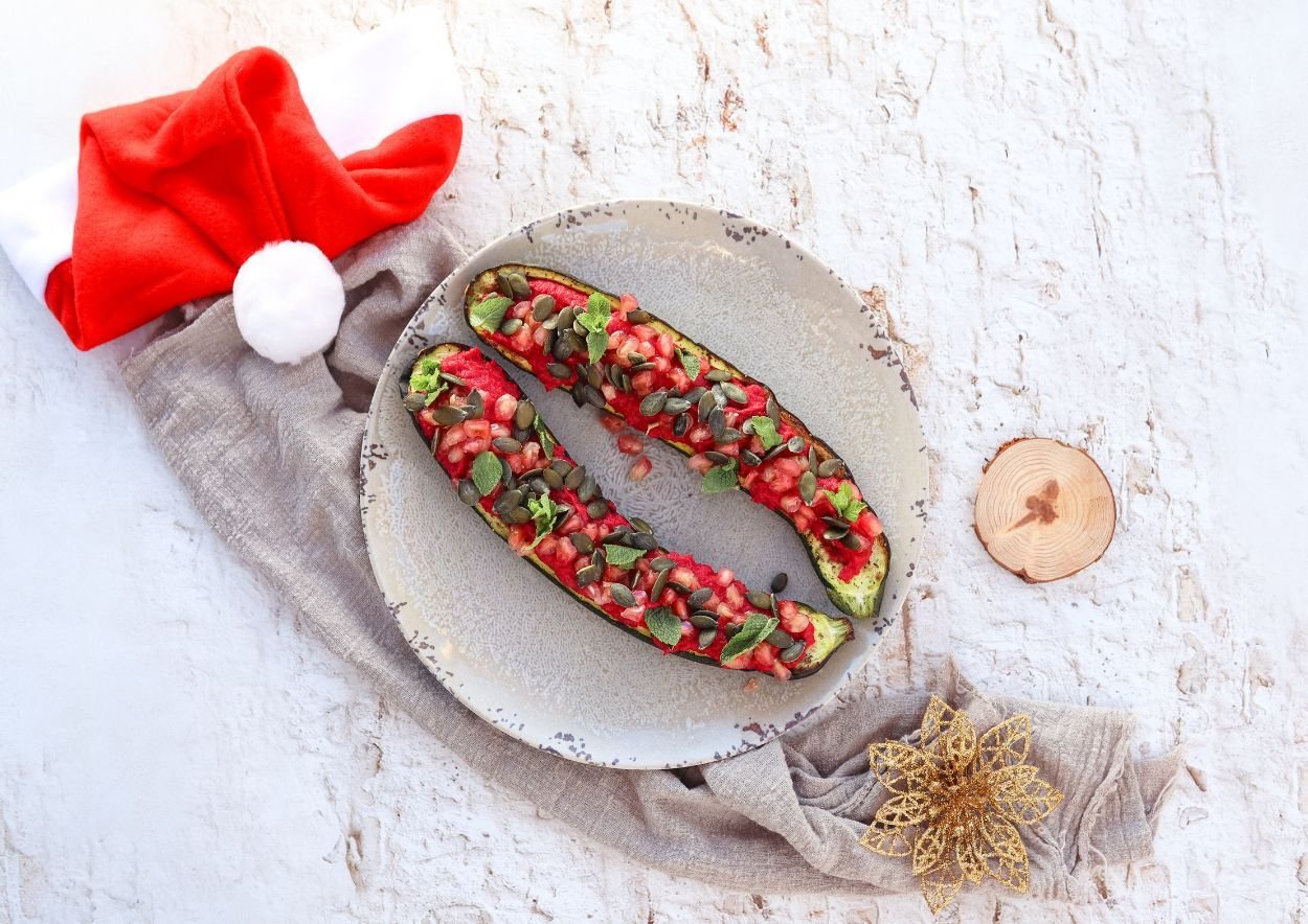 ~ Gevulde courgette met bietenhummus ~