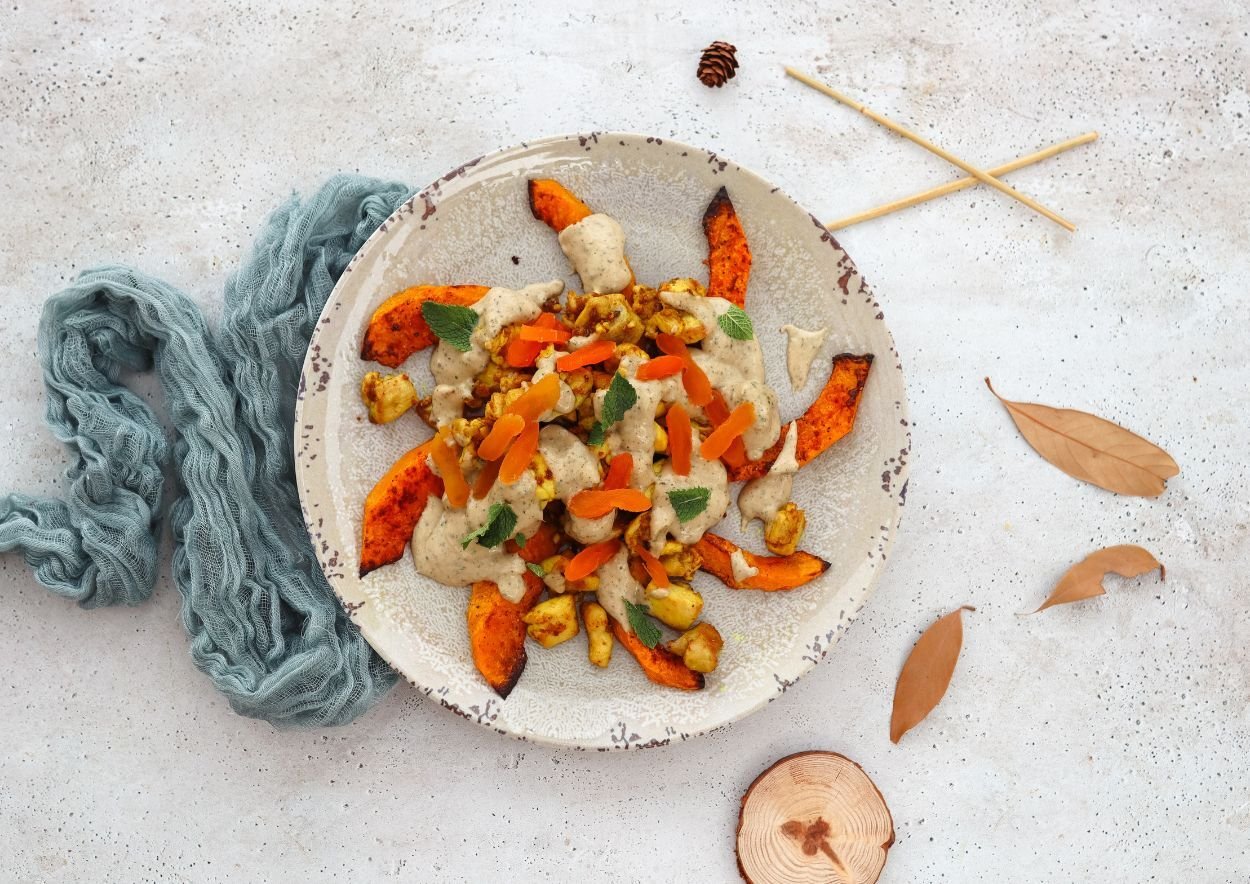~ Gegrilde pompoen met kip en tahin-muntsaus ~