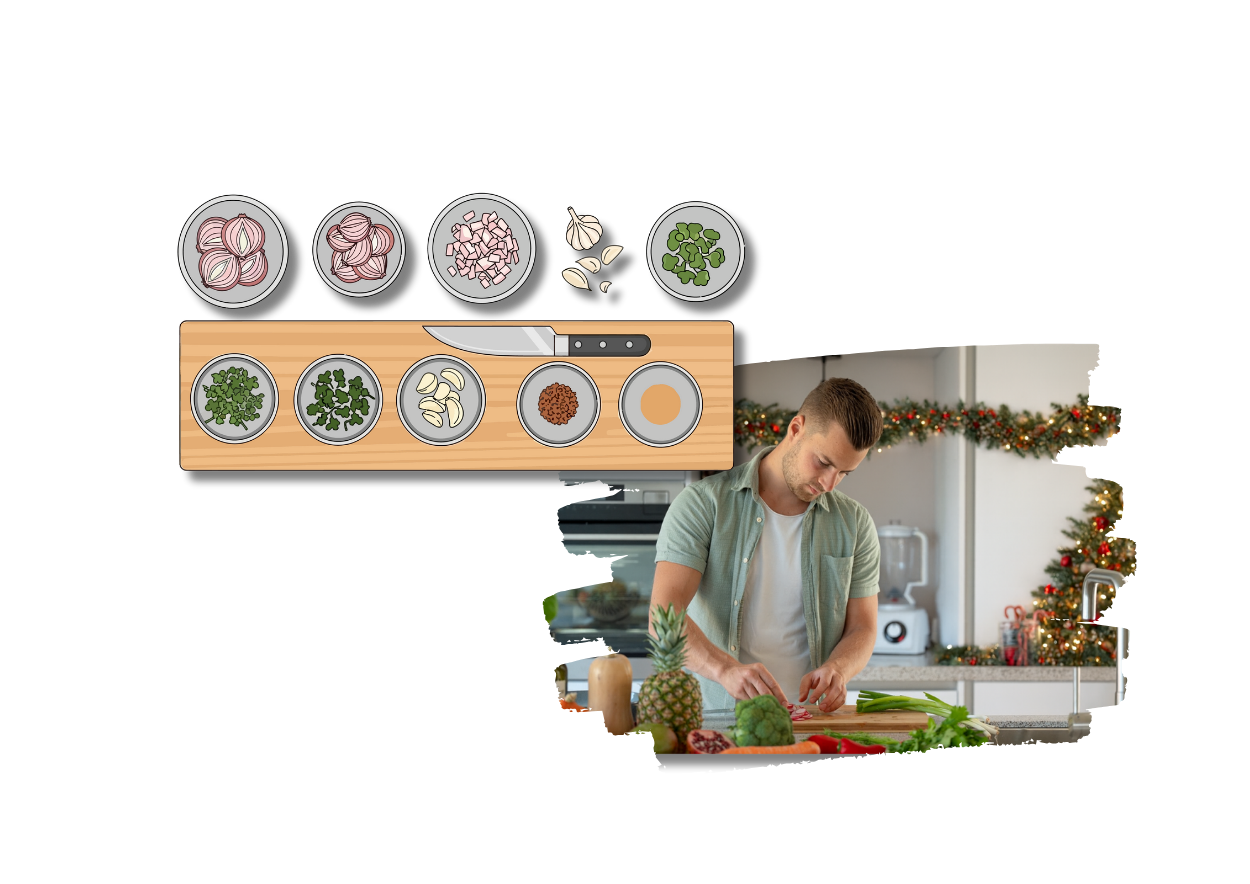 Exact zien wat je al een dag van tevoren kunt voorbereiden en wat je op het moment zelf doet. Rust, overzicht en nul tijdnood tijdens kerst.